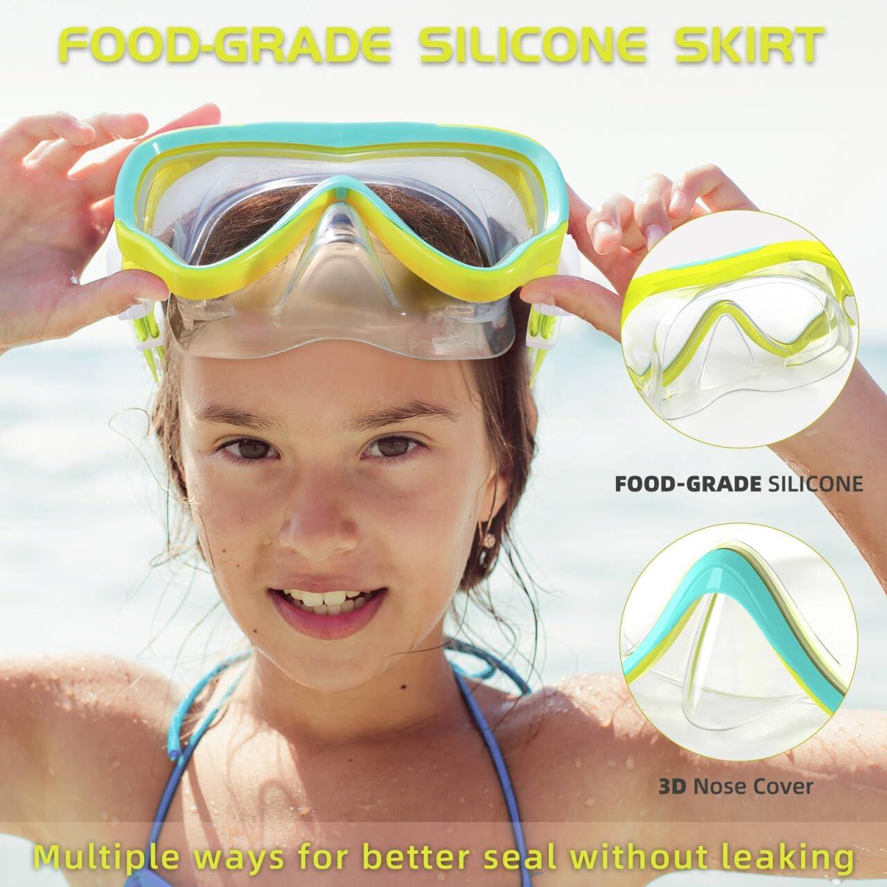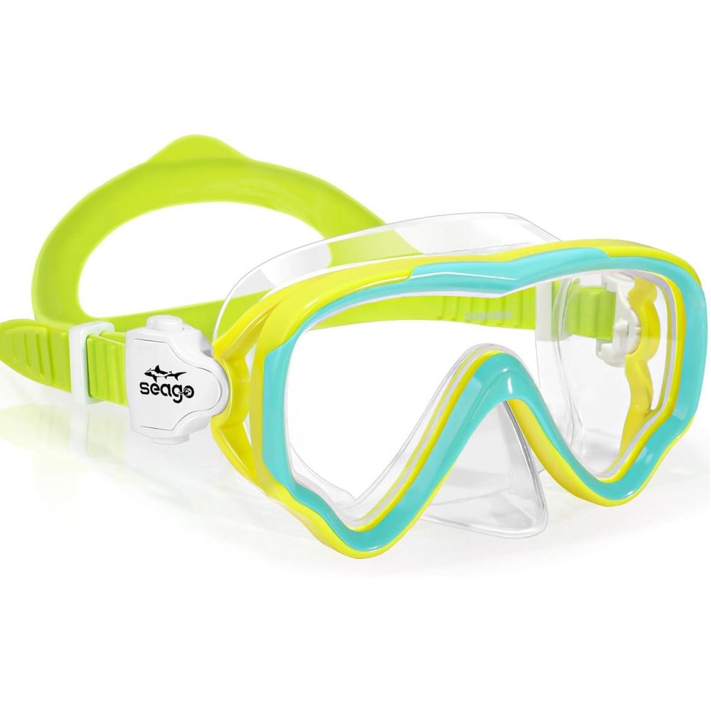 Seago Kids Swim Goggles Snorkel Diving Mask for Youth(5-15), Anti-Fog 180° Clear View(Yellow & Green)