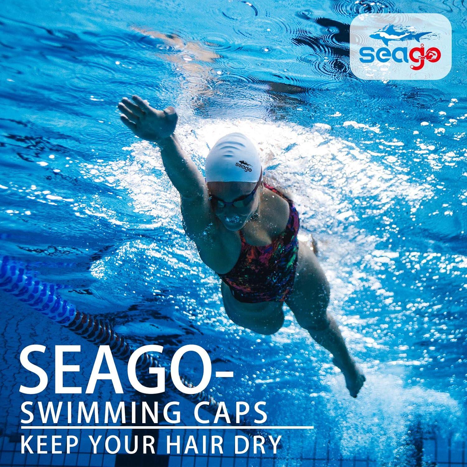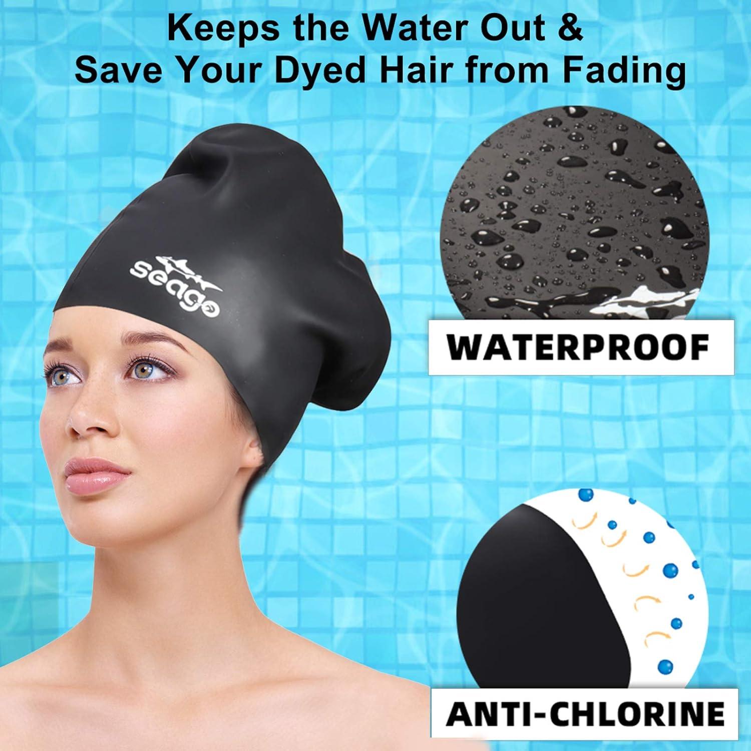【WORKS PERFECTLY TO KEEP HAIR DRY】The Seago swimming cap effectively prevents water from getting inside, keeping your hair dry. Enjoy swimming at the beach without worries. Additionally, the Seago swimming cap protects your hair and ears from chlorine, sand, and other elements, while helping preserve the color of dyed hair.
